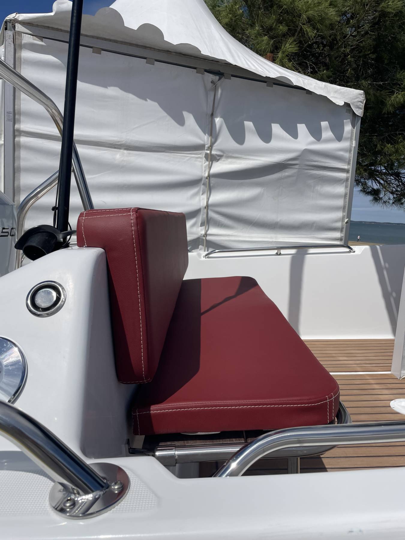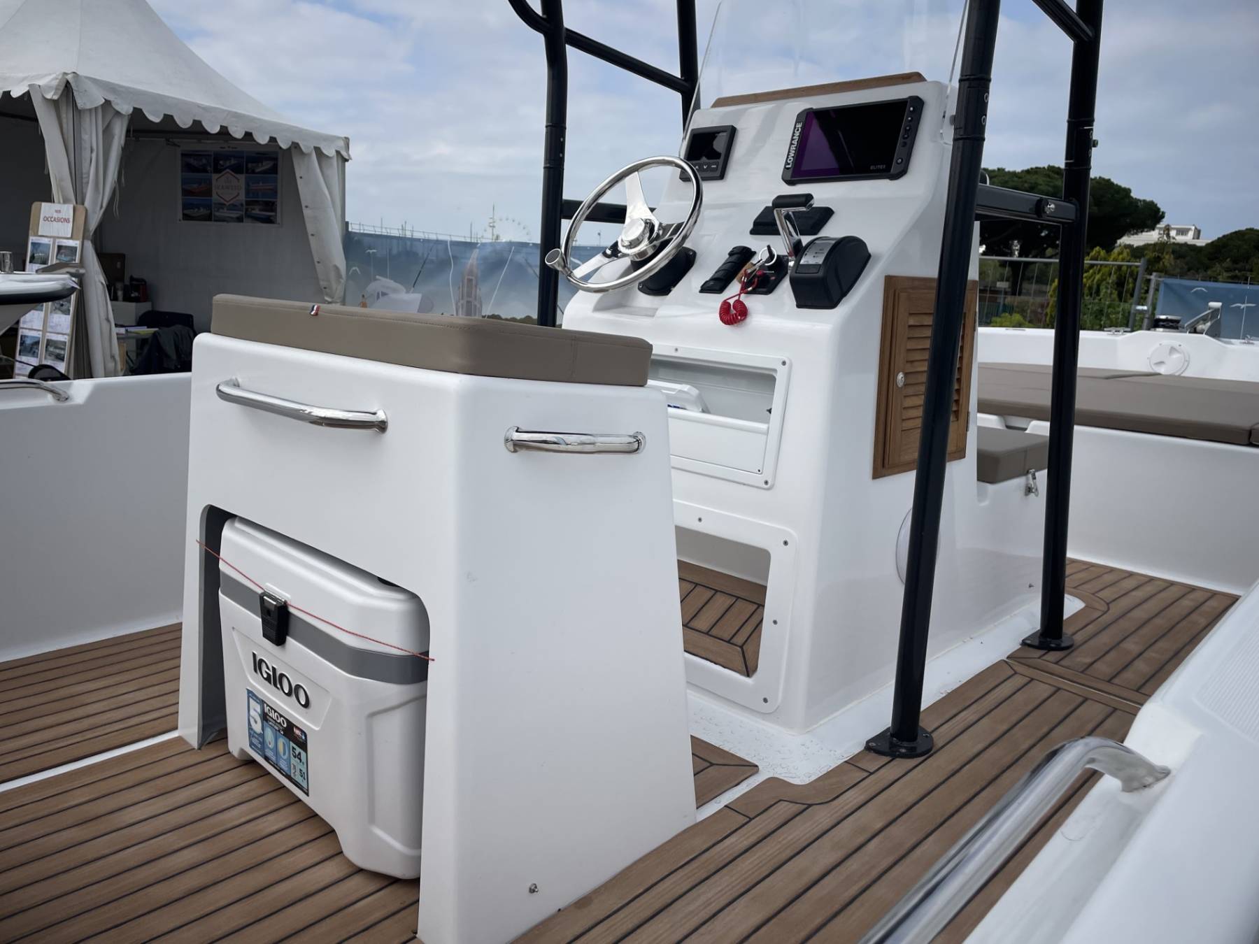 Son pont large est spacieux et permet une circulation sécurisée à bord. Son large bain de soleil recouvre un grand coffre de rangement.